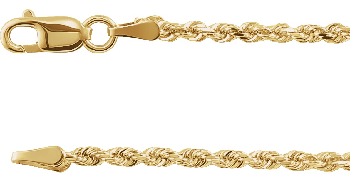 14K Yellow 1.8 mm Diamond-Cut Rope 18" Chain
