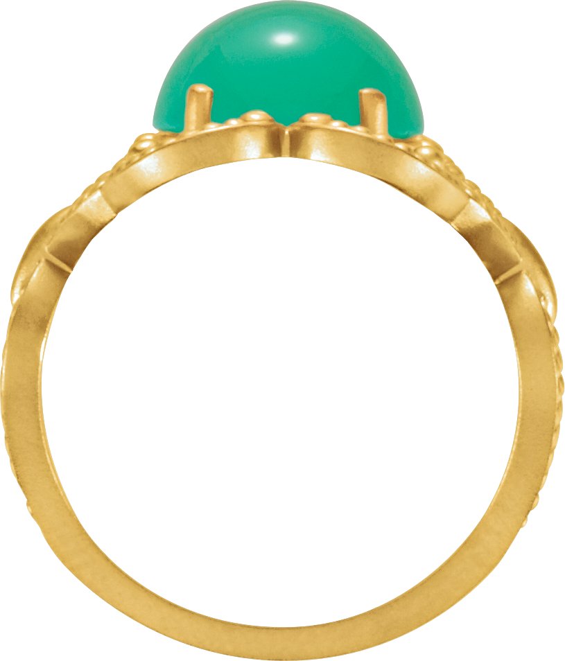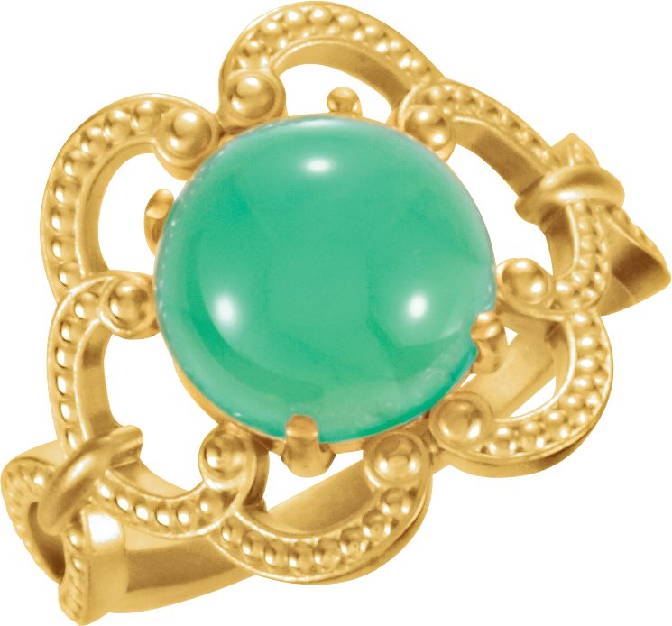14K Yellow 10 mm Granulated Design Chrysoprase Ring