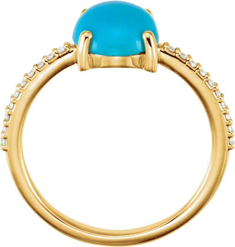 14K Yellow 10x8 mm Oval Cabochon Turquoise & 1/10 CTW Diamond Ring