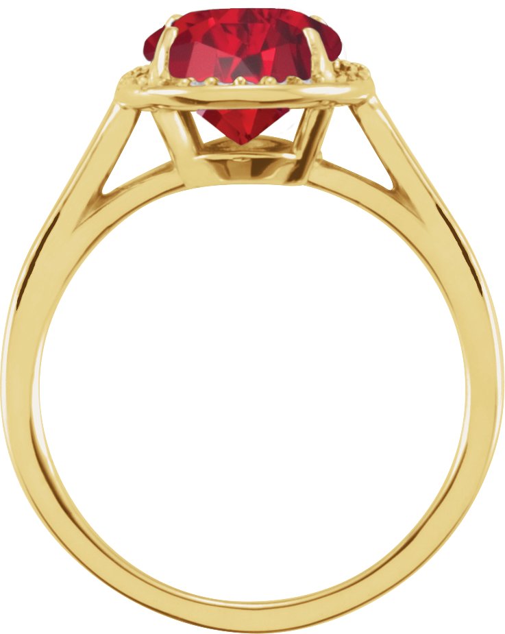 14K Yellow 10x8 mm Oval Chatham Lab Created Ruby & .06 CTW Diamond Ring