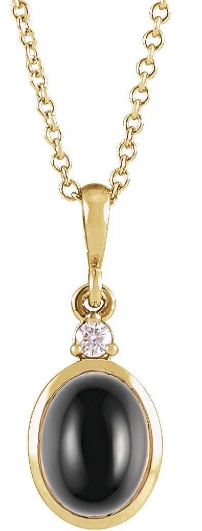14K Yellow 12x10 mm Natural Black Onyx & .03 CT Natural Diamond 16-18" Necklace
