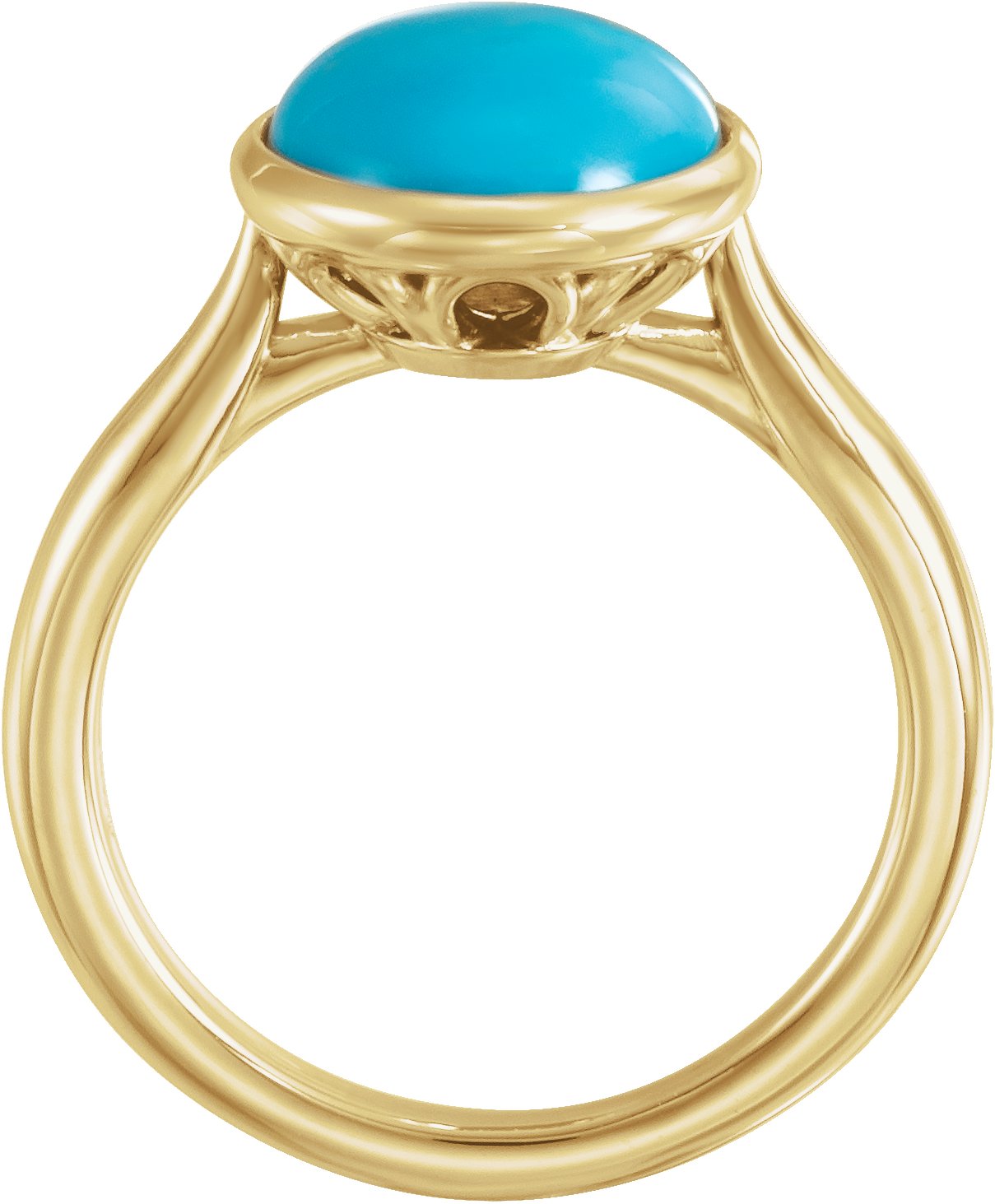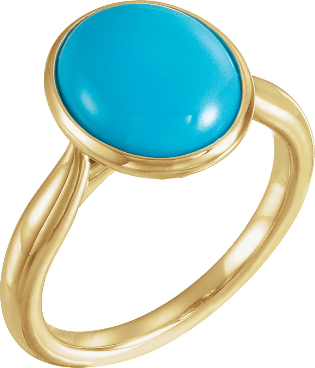 14K Yellow 12x10 mm Oval Cabochon Turquoise Ring