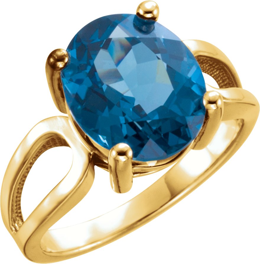 14K Yellow 12x10 mm Oval London Blue Topaz Ring
