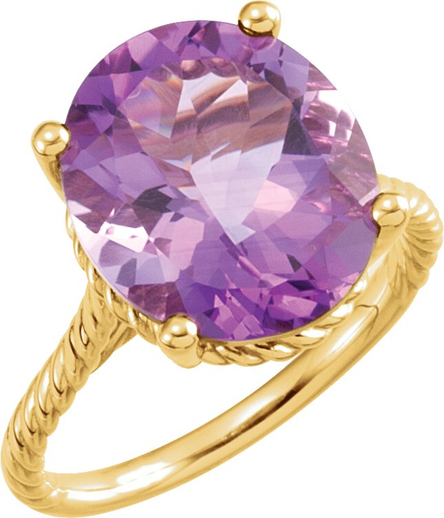 14K Yellow 14x12 mm Amethyst Rope Ring