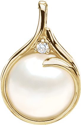 14K Yellow 15 mm Mabé Cultured Pearl & .06 CTW Diamond Pendant