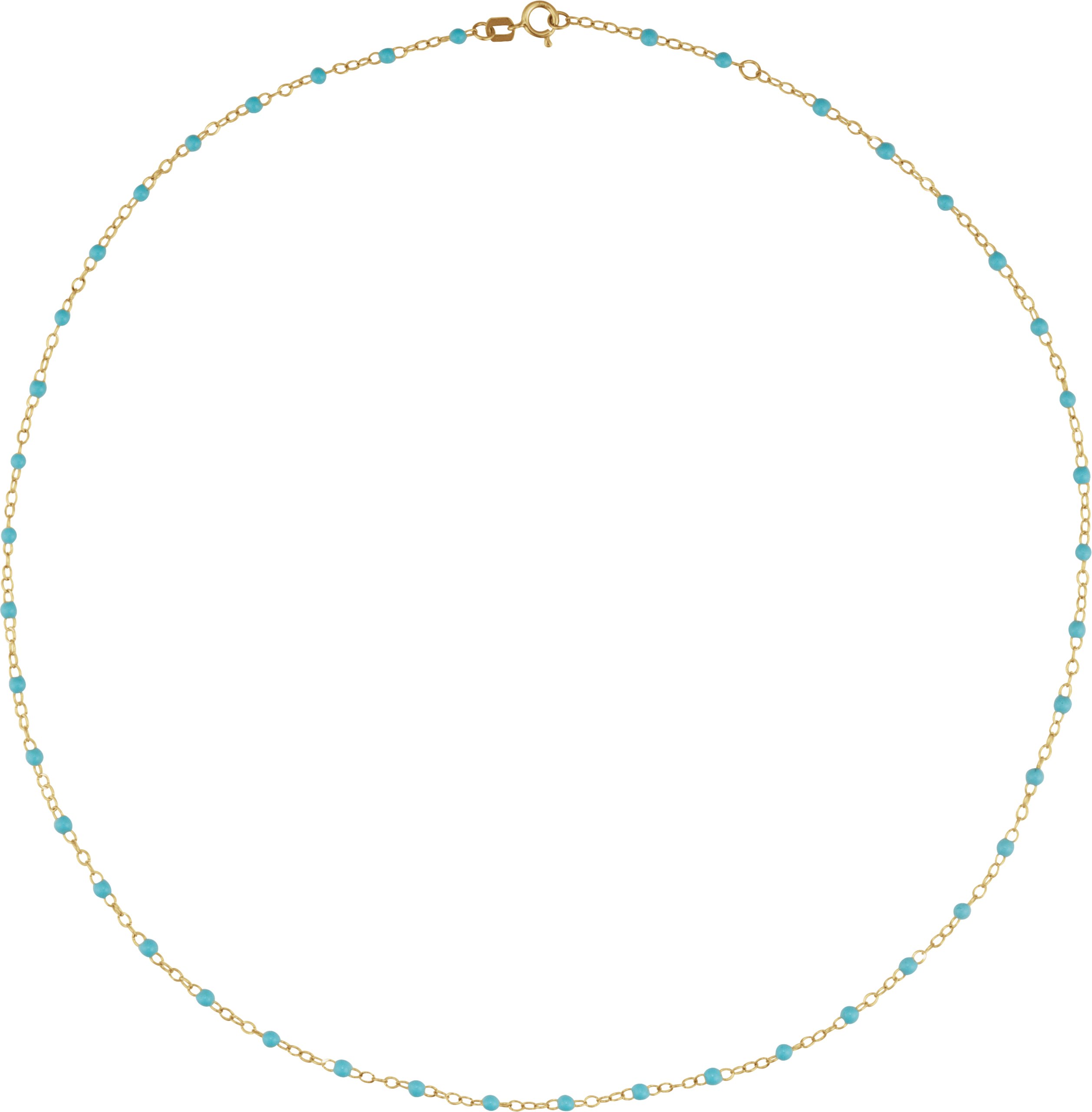 14K Yellow 2 mm Adjustable Turquoise Enamel Bead 17-18" Chain