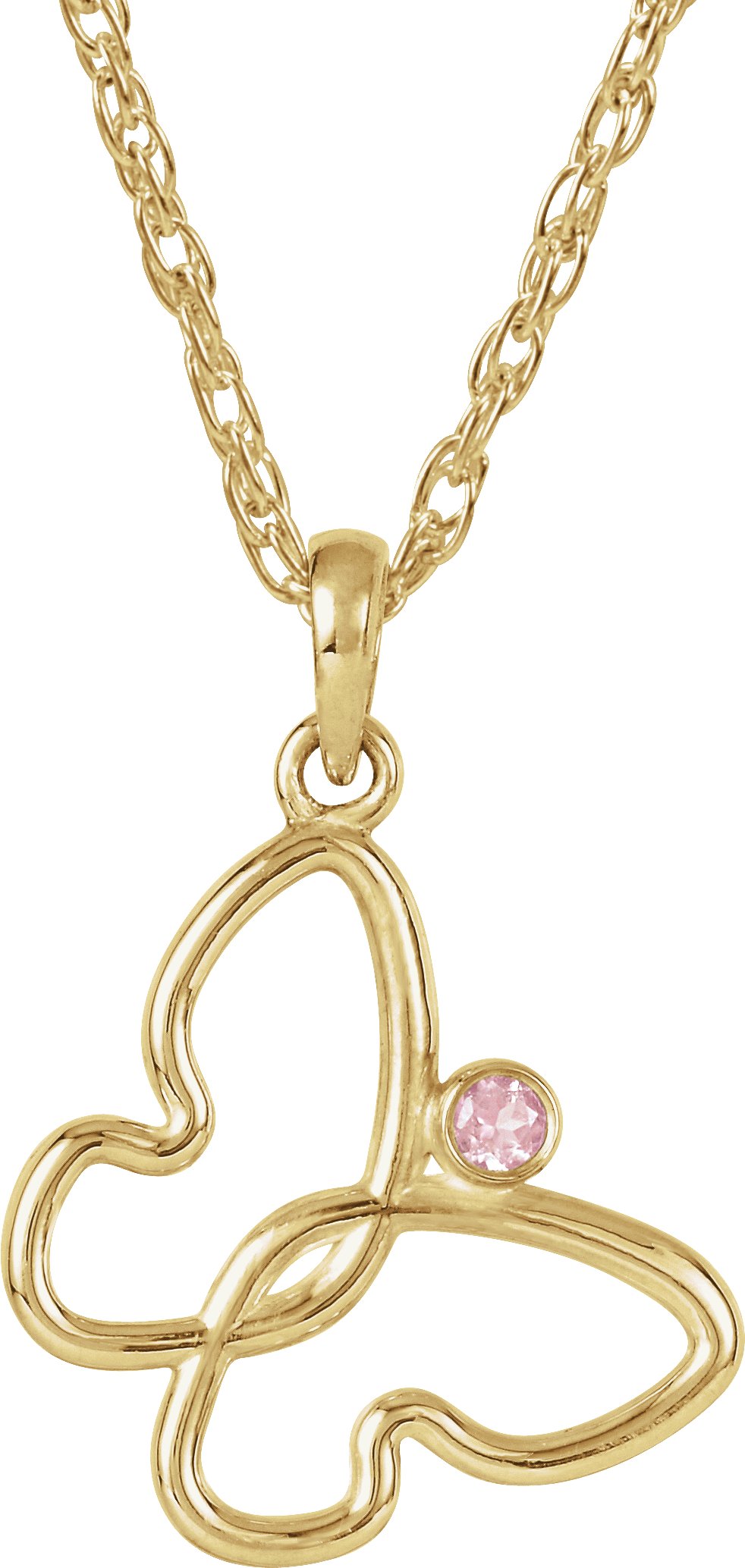 14K Yellow 2 mm Round Pink Tourmaline Butterfly 18" Necklace Ref. 4375014