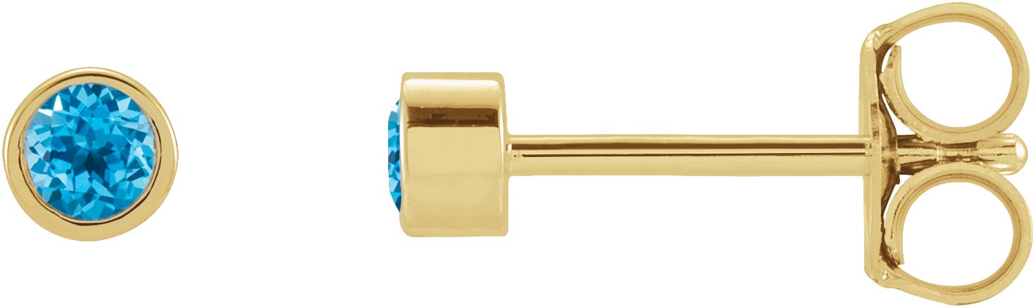 14K Yellow 2 mm Round Swiss Blue Topaz Micro Bezel-Set Earrings
