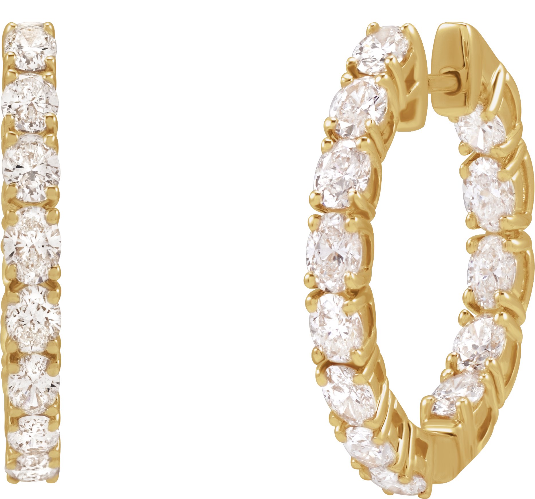 14K Yellow 2 5/8 CTW Natural Diamond Inside-Outside 20.6 mm Hoop Earrings