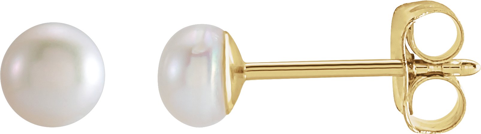 14K Yellow 3 mm Cultured White Freshwater Pearl Earrings Ref 17475313