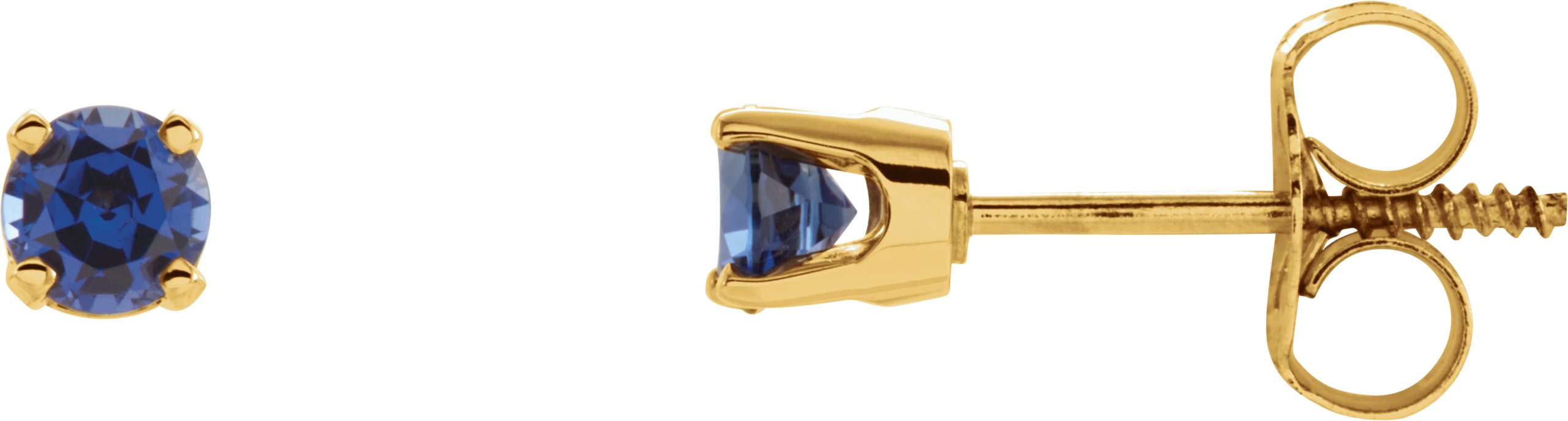 14K Yellow 3 mm Round Imitation Blue Sapphire Youth Birthstone Earrings