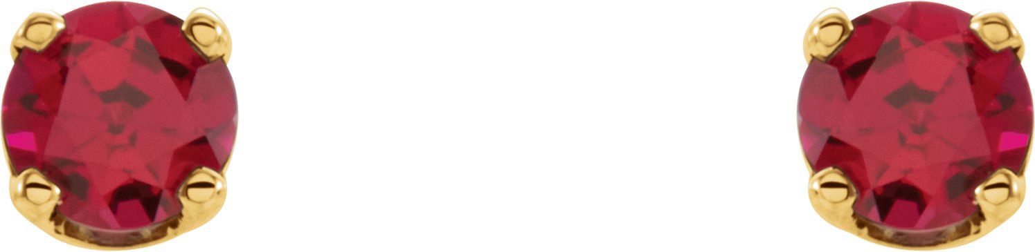 14K Yellow 3 mm Round Imitation Ruby Youth Birthstone Earrings