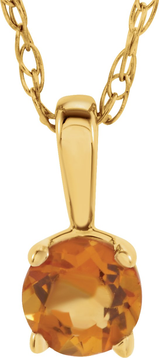 14K Yellow 3 mm Round November Imitation Citrine Youth Birthstone 14 inch Necklace