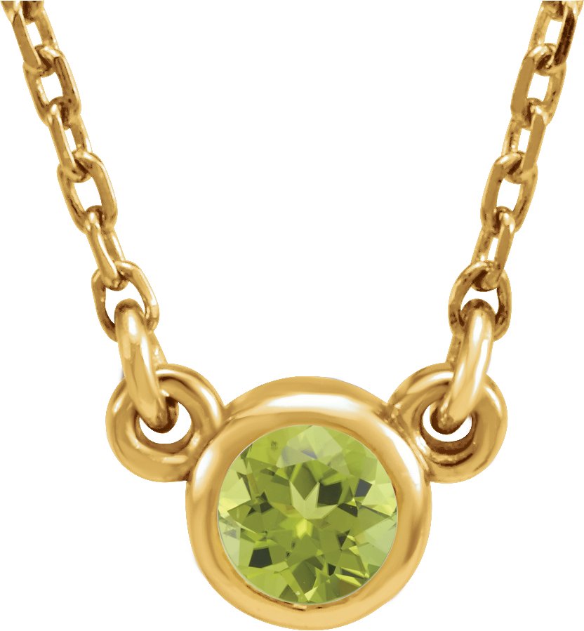 14K Yellow 3 mm Round Peridot Bezel Set Solitaire 16" Necklace Ref. 14244537