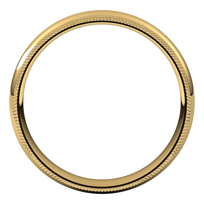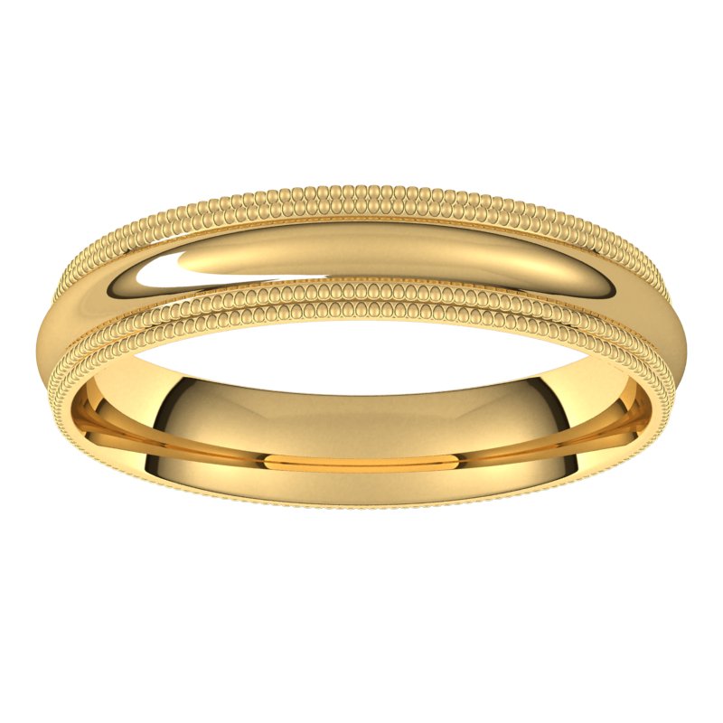 14K Yellow 4 mm Double Milgrain Half Round Comfort Fit Band Size 10