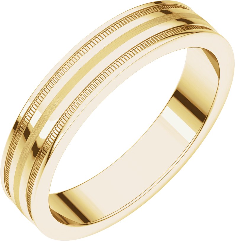 14K Yellow 4 mm Flat Edge Band with Satin Finish & Milgrain Size 17