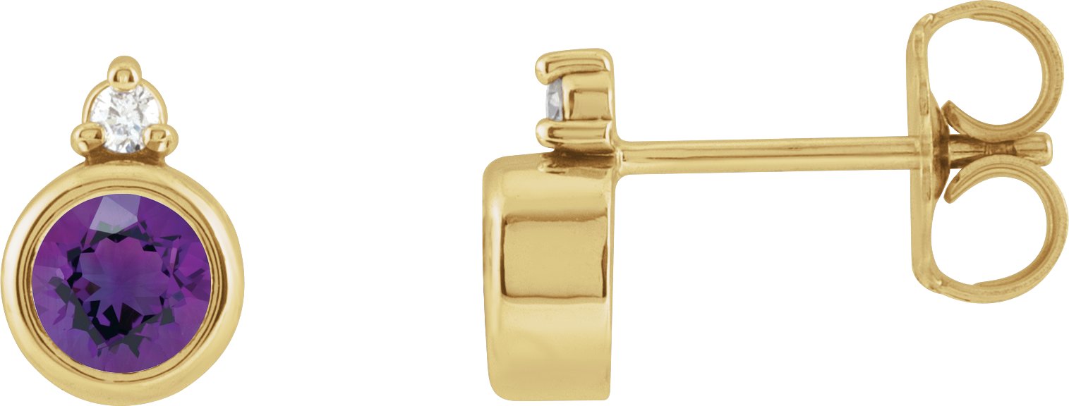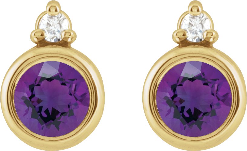 14K Yellow 4 mm Natural Amethyst & .03 CTW Natural Diamond Earrings