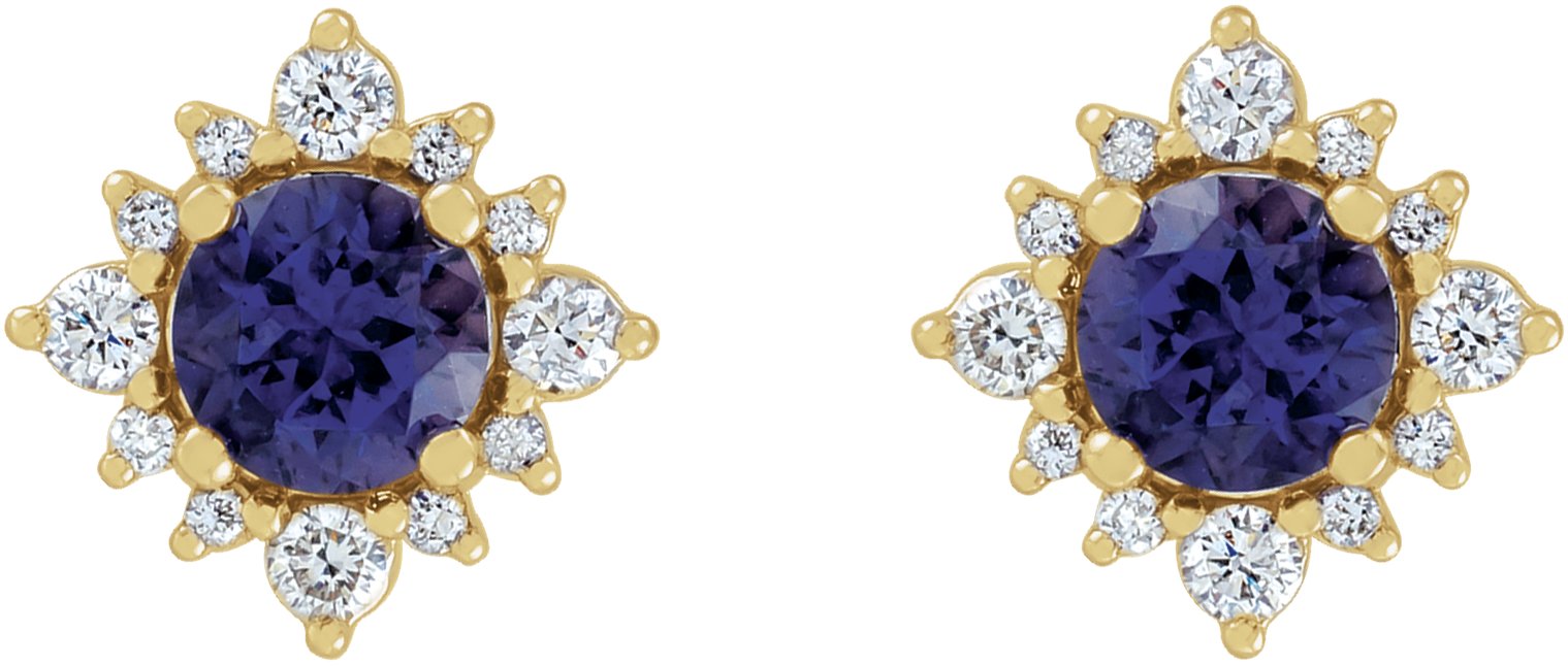 14K Yellow 4 mm Natural Iolite and 0.17 CTW Natural Diamond Halo Style Earrings Ref 17586721