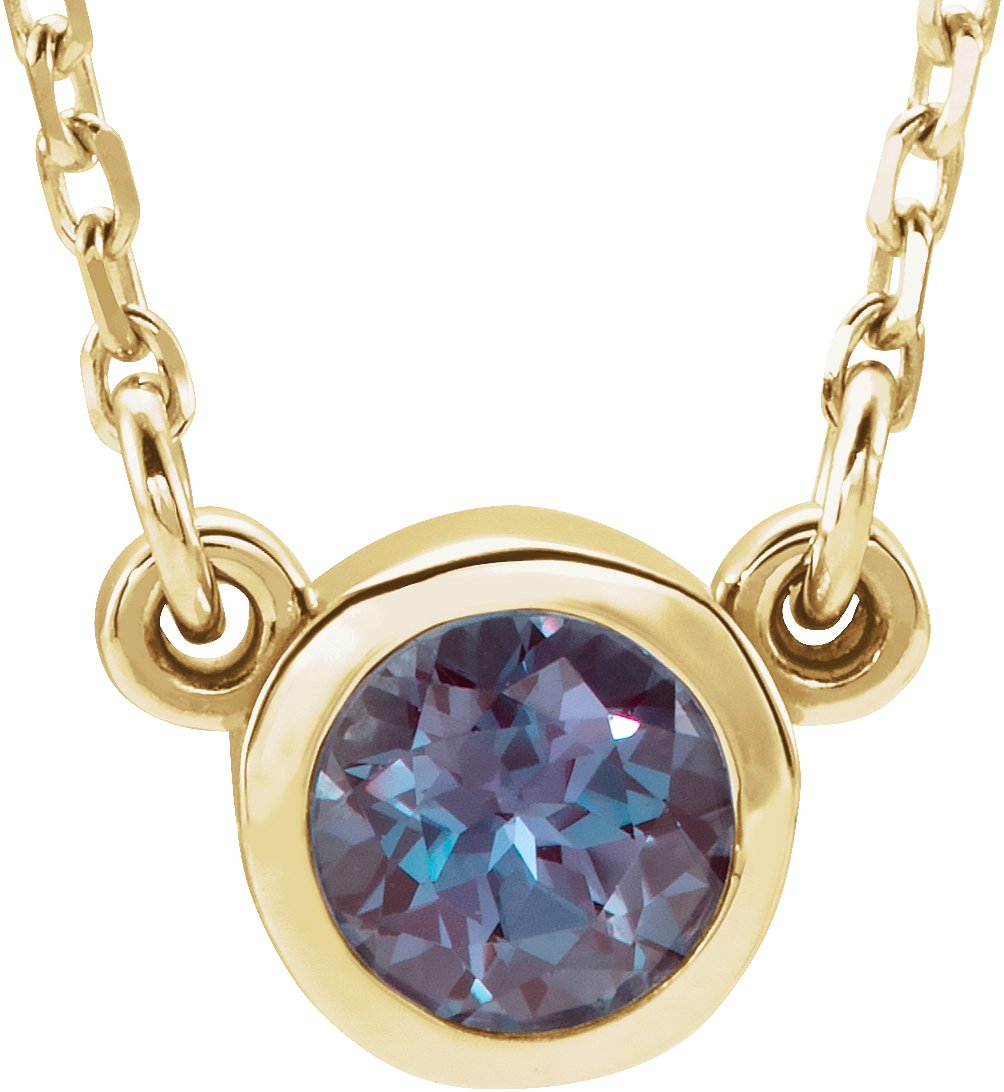 14K Yellow 4 mm Round Alexandrite Bezel Set Solitaire 16" Necklace Ref. 11739989