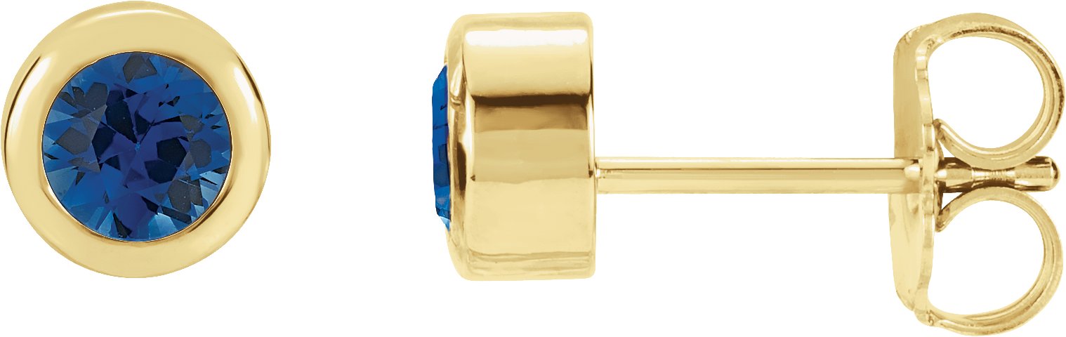 14K Yellow 4 mm Round Chatham Created Blue Sapphire Birthstone Earrings