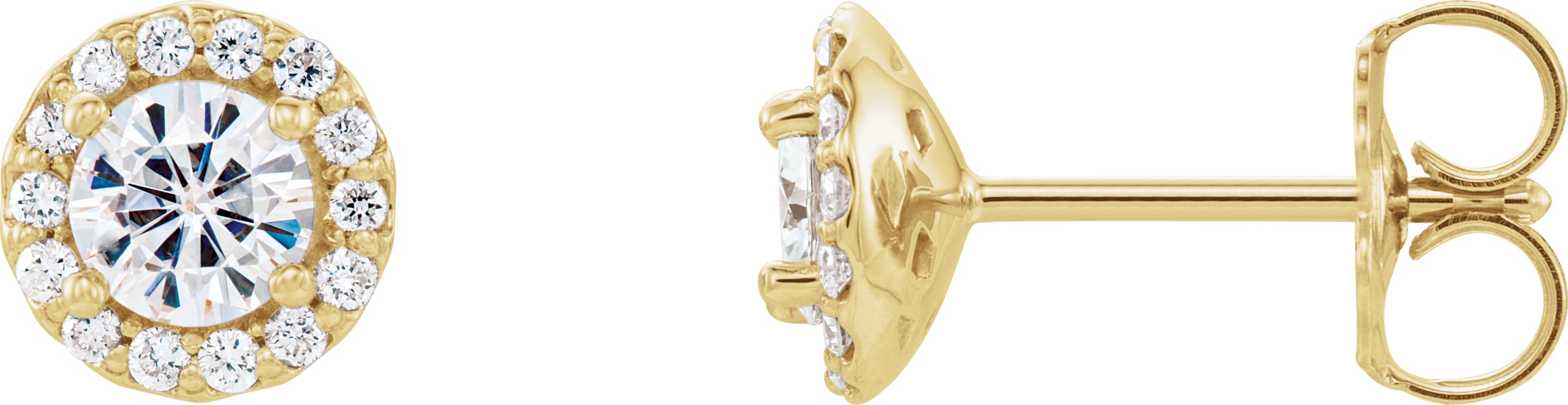 14K Yellow 4 mm Round Forever One™ Moissanite and 1/8 CTW Diamond Earrings
