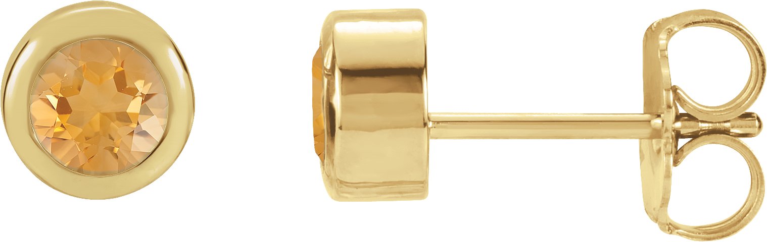 14K Yellow 4 mm Round Genuine Citrine Birthstone Earrings
