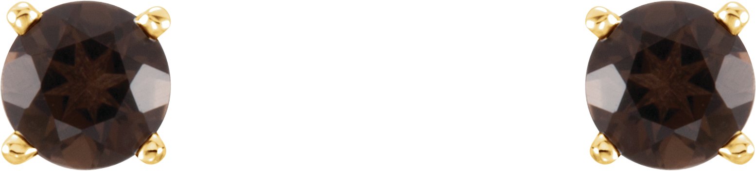 14K Yellow 4 mm Round Smoky Quartz Earrings