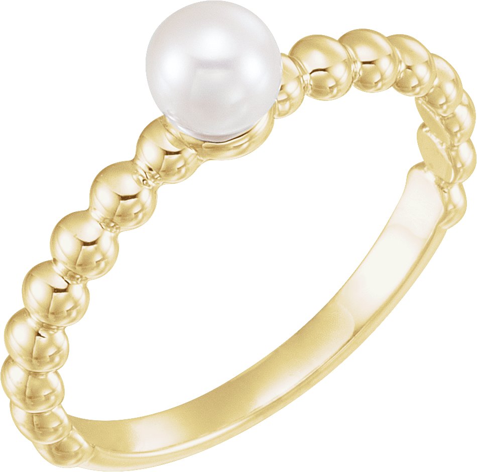14K Yellow 4.5 5.0 mm Freshwater Cultured Pearl Stackable Beaded Ring