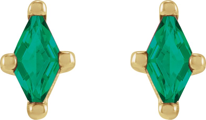 14K Yellow 4x2 mm Lab Grown Emerald Earrings Ref 19625861