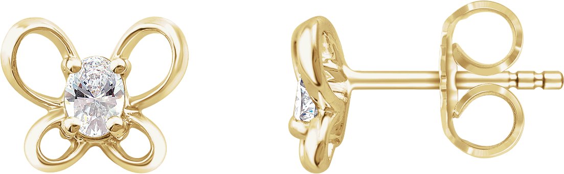 14K Yellow 4x3 mm Oval April Youth Butterfly Birthstone Earrings