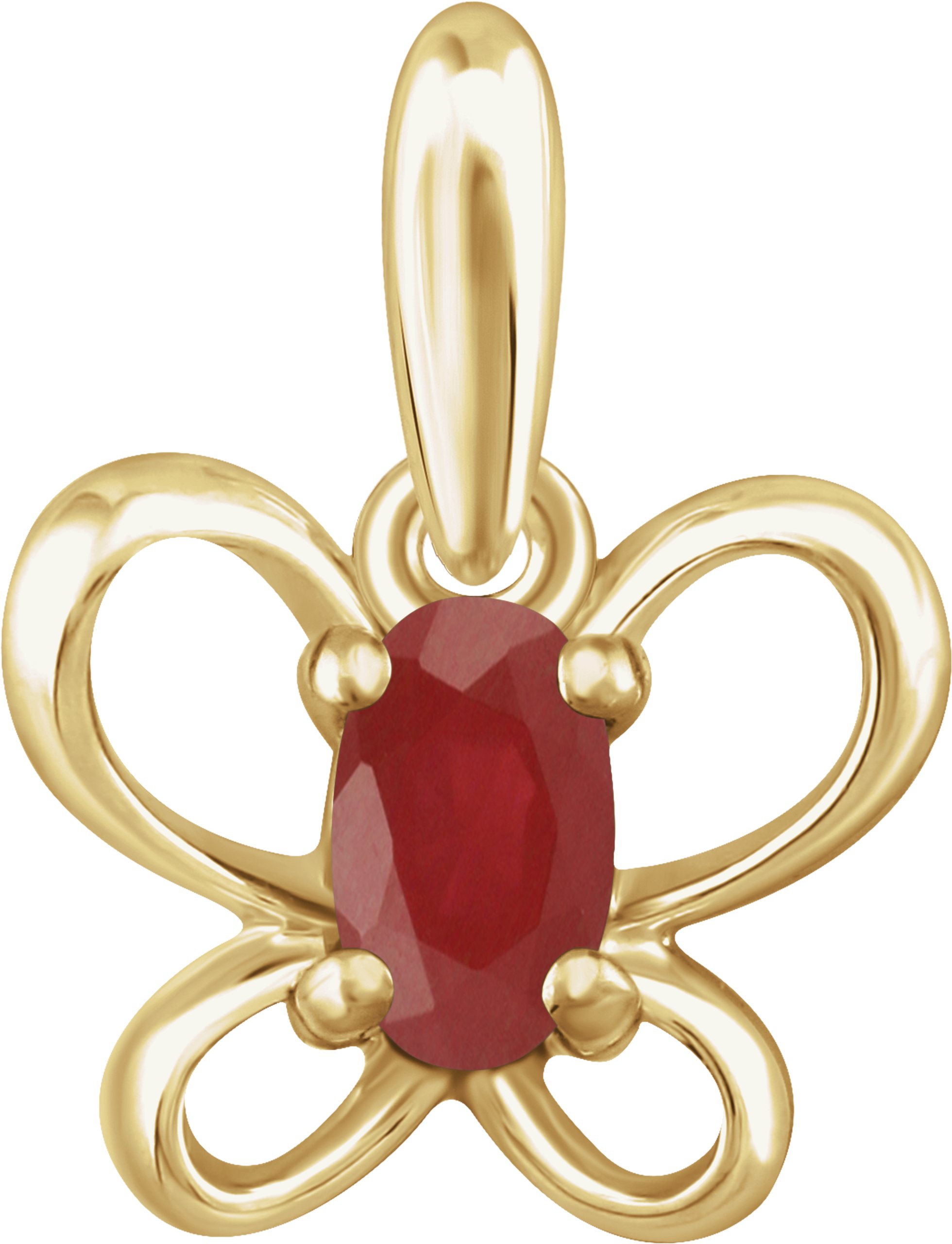 14K Yellow 4x3 mm Oval July Youth Butterfly Birthstone Pendant