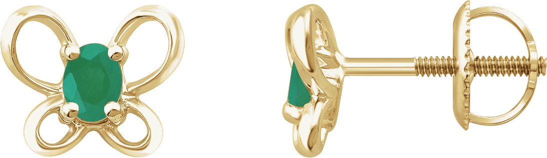 14K Yellow 4x3 mm Oval May Youth Butterfly Birthstone Earrings
