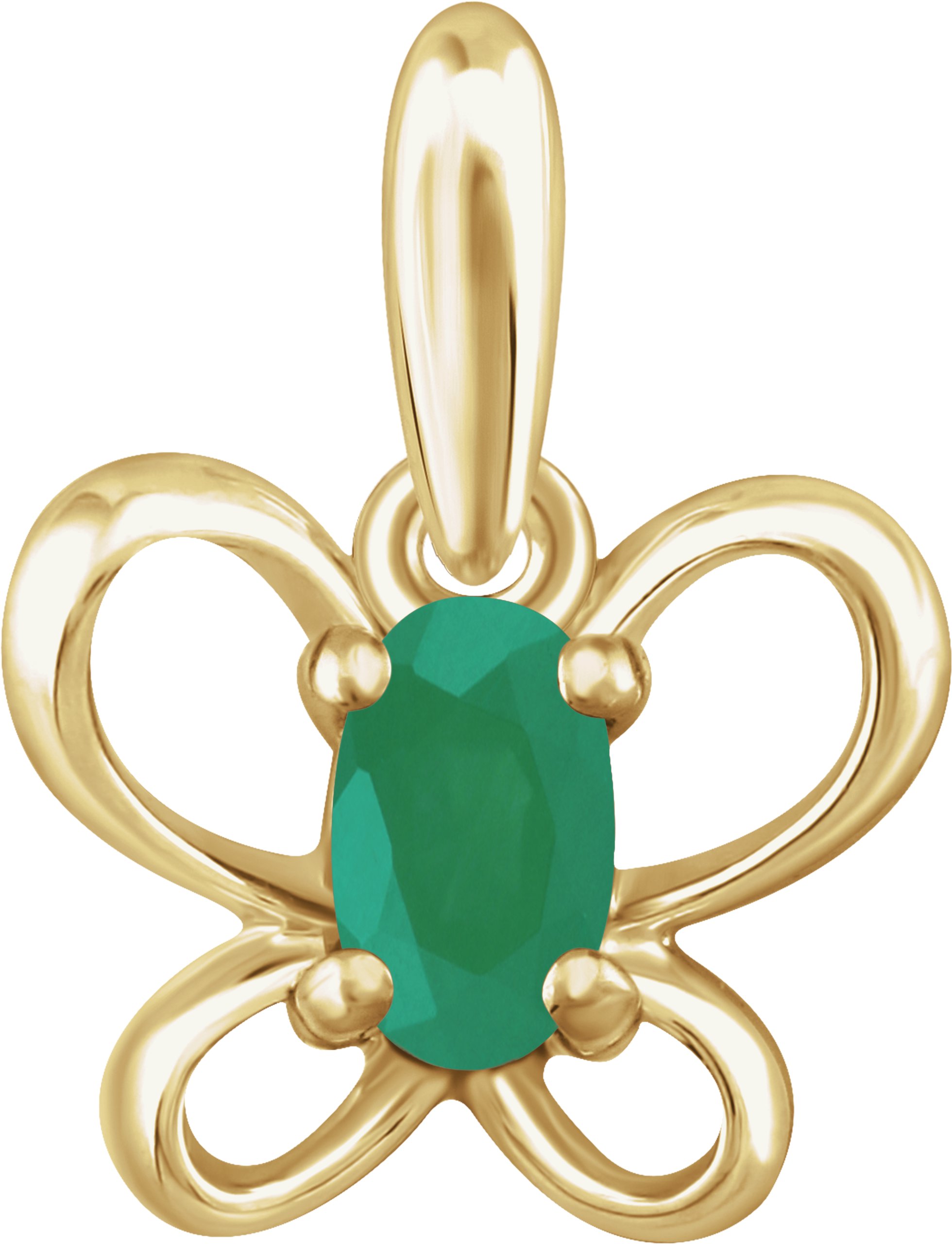 14K Yellow 4x3 mm Oval May Youth Butterfly Birthstone Pendant