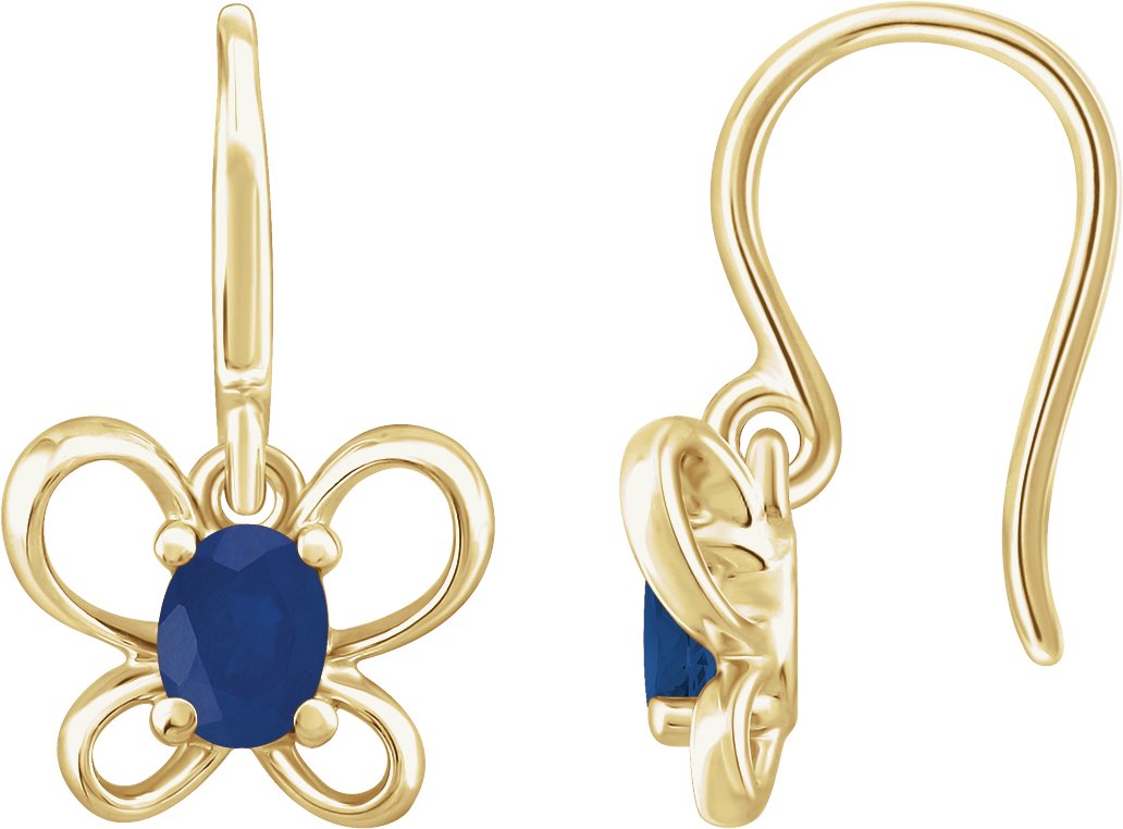 14K Yellow 4x3 mm Oval September Youth Butterfly Birthstone Earrings