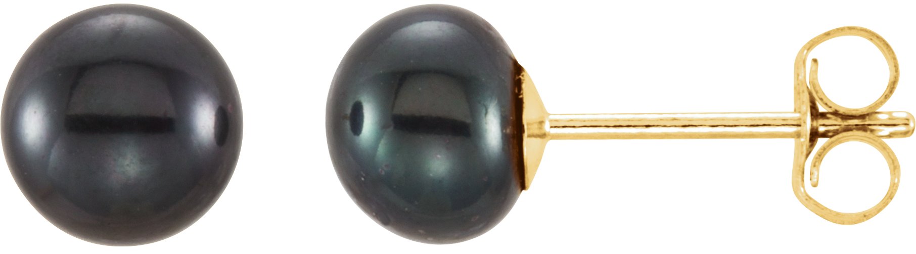 14K Yellow 5 6 mm Black Freshwater Cultured Pearl Earrings