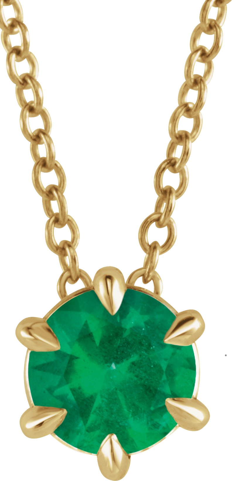 14K Yellow 5 mm Lab Grown Emerald Solitaire 16 to 18 inch Necklace Ref 16629148