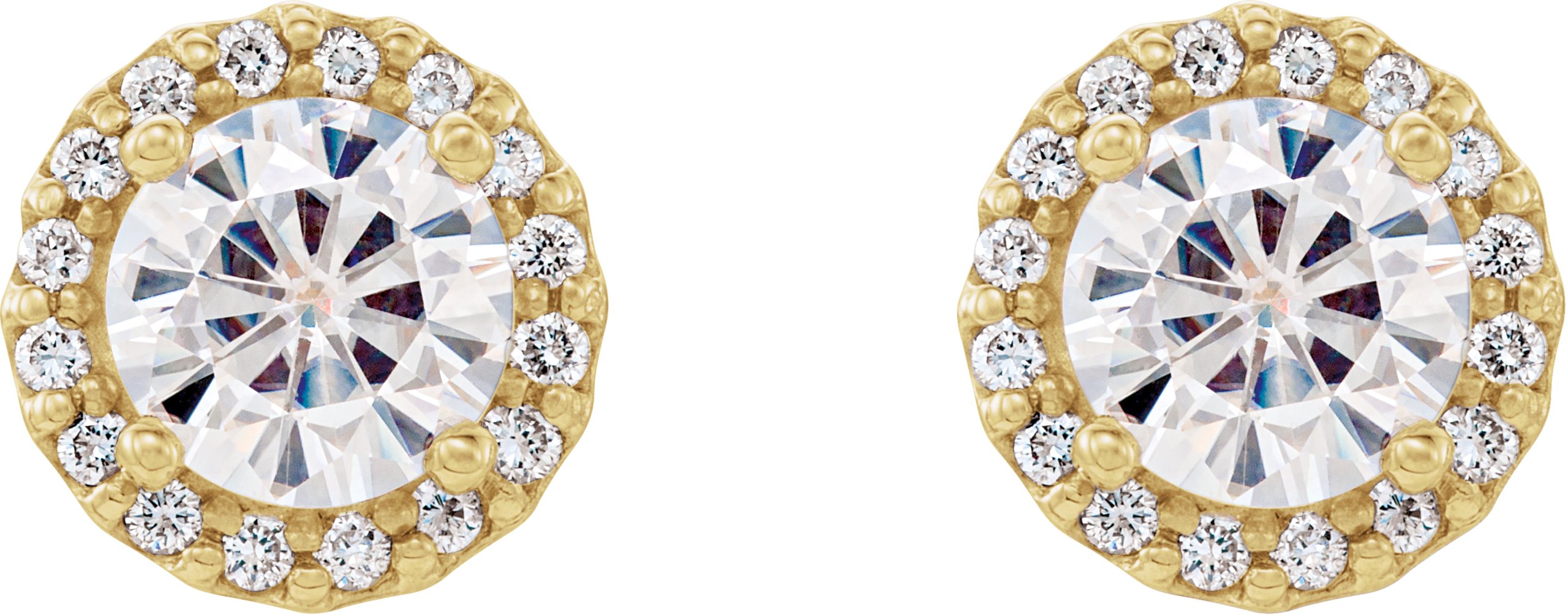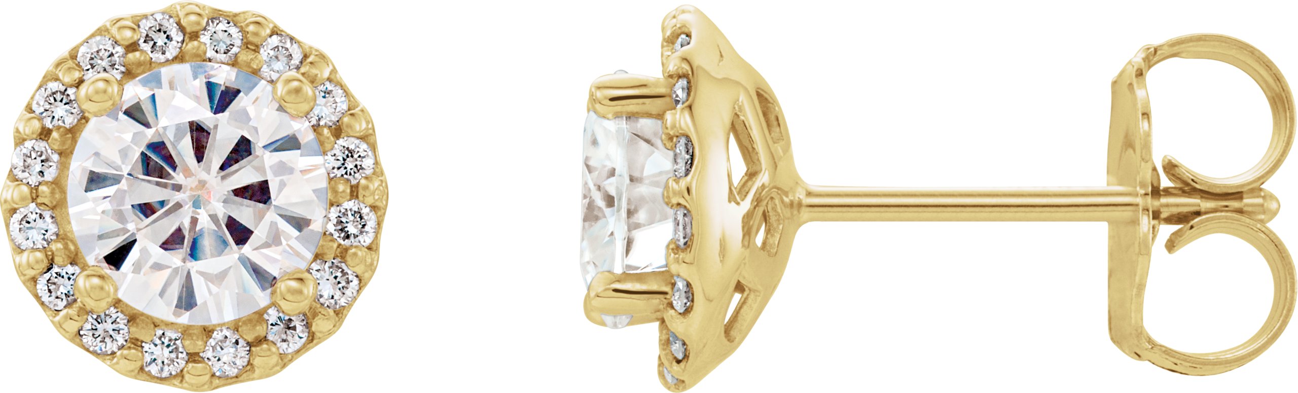 14K Yellow 5 mm Round Forever One™ Moissanite and 1/8 CTW Diamond Earrings