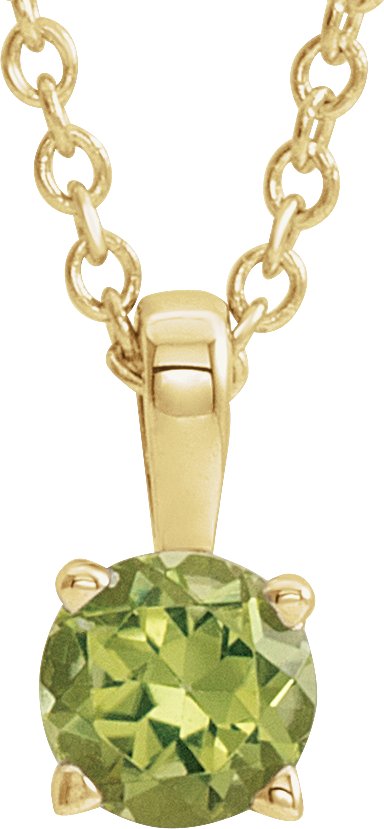 14K Yellow 5 mm Round Peridot Birthstone 16 18 inch Necklace