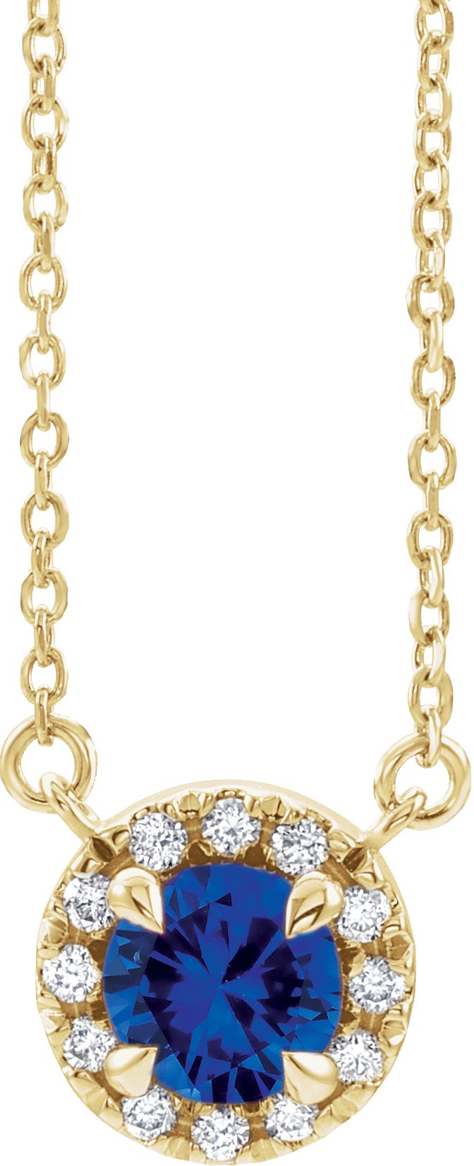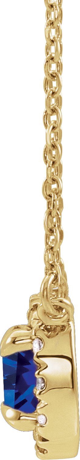 14K Yellow 5.5 mm Round Blue Sapphire & 1/8 CTW Diamond 18 inch Necklace