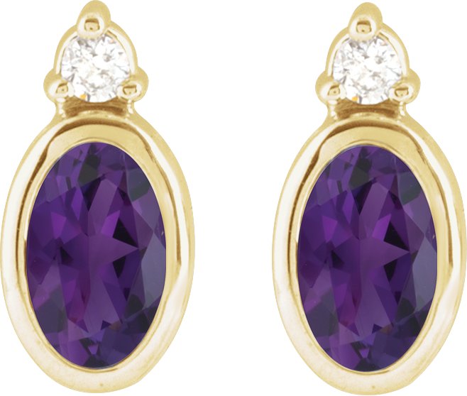 14K Yellow 5x3 mm Natural Amethyst & .03 CTW Natural Diamond Earrings