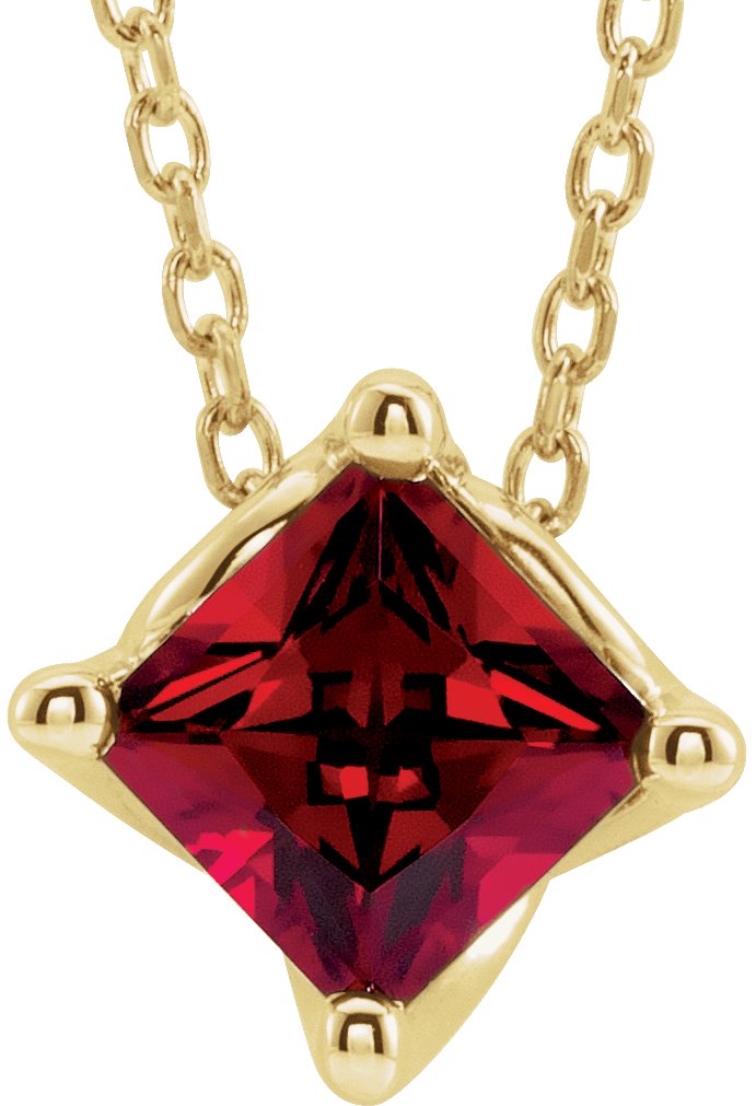 14K Yellow 5x5 mm Square Chatham Lab Created Ruby Solitaire 16 18" Necklace Ref. 15609242