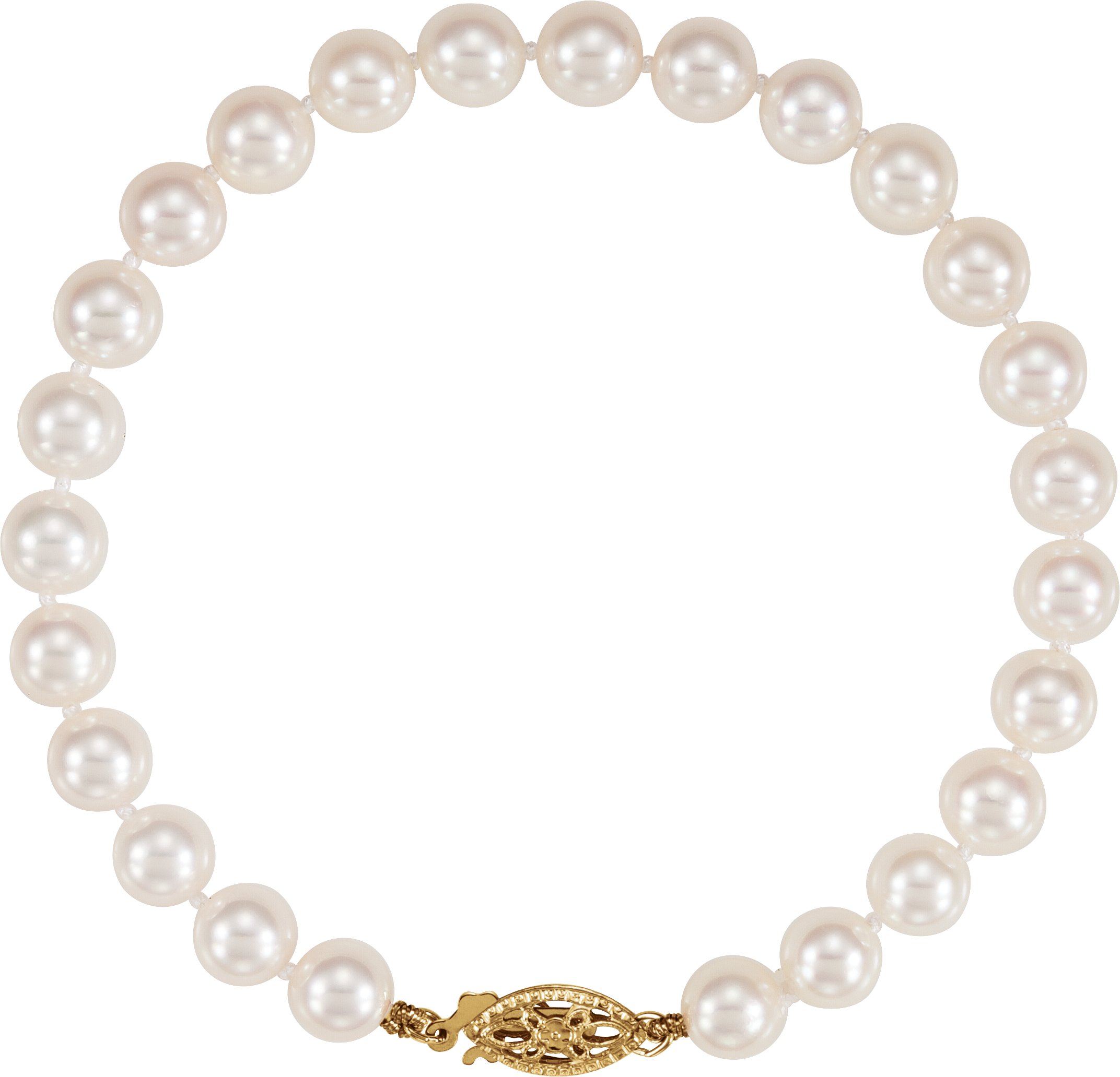 14K Yellow 6 6.5 mm Akoya Cultured Pearl 7 inch Bracelet