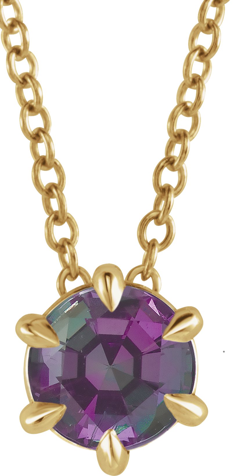 14K Yellow 6 mm Lab Grown Alexandrite Solitaire 16 to 18 inch Necklace Ref 16629225