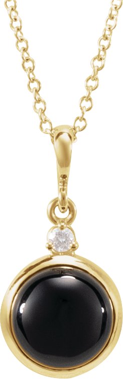 14K Yellow 6 mm Natural Black Onyx & .03 CT Natural Diamond Cabochon 16-18" Necklace
