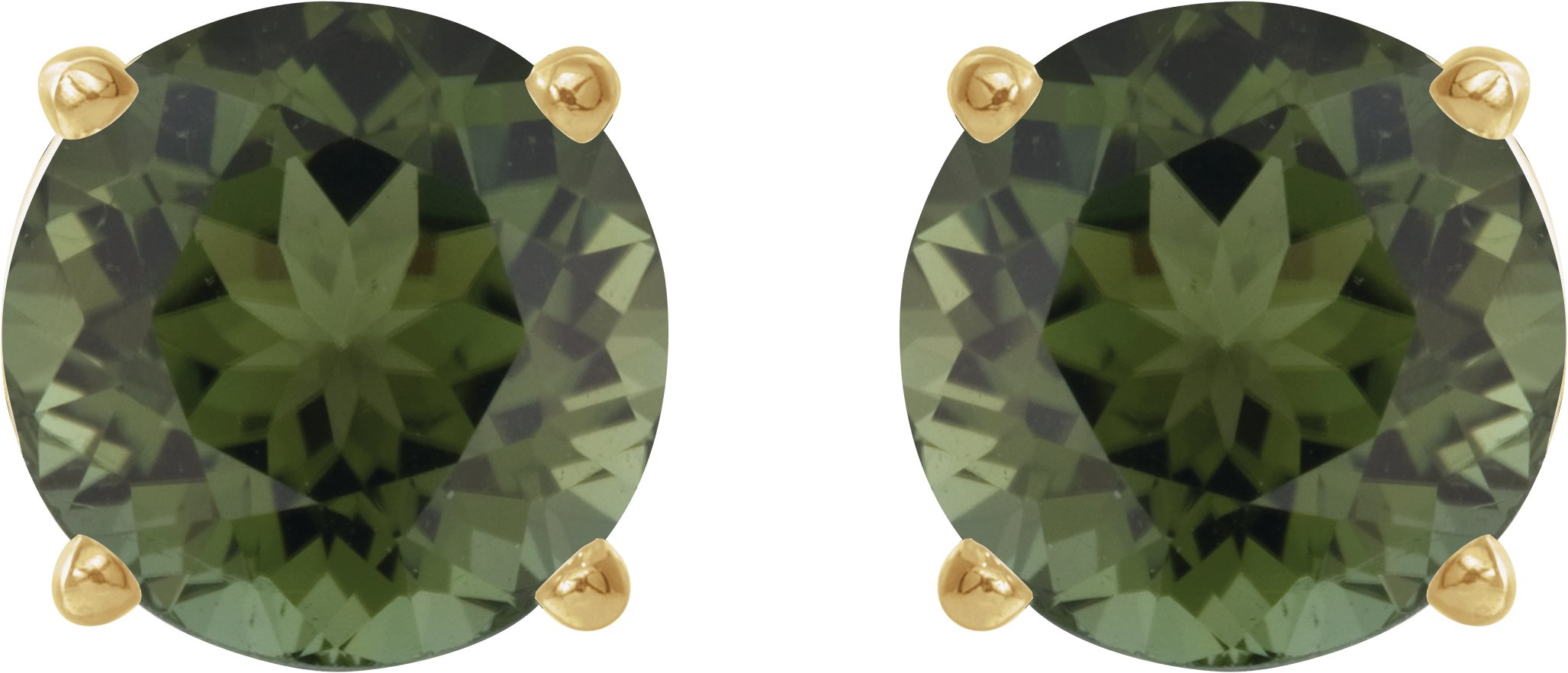 14K Yellow 6 mm Natural Green Tourmaline Stud Earrings