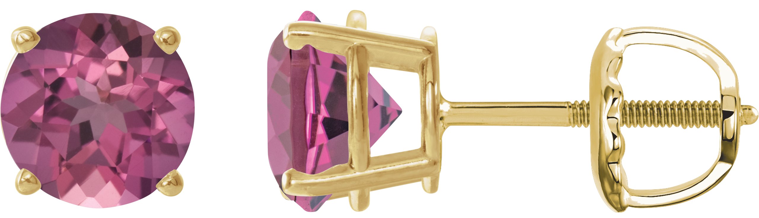 14K Yellow 6 mm Natural Pink Tourmaline Stud Earrings
