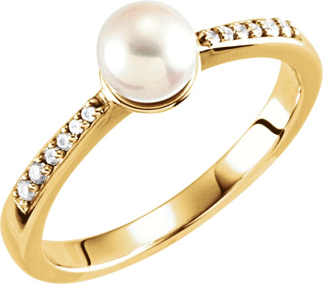 14K Yellow 6 mm Pearl & .08 CTW Diamond Ring