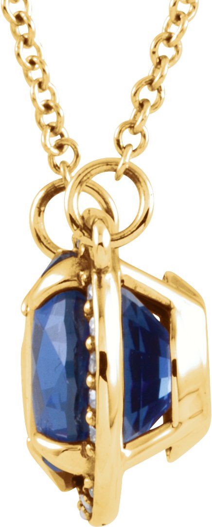 14K Yellow 6 mm Round Chatham Created Blue Sapphire and .04 CTW Diamond 16 inch Necklace