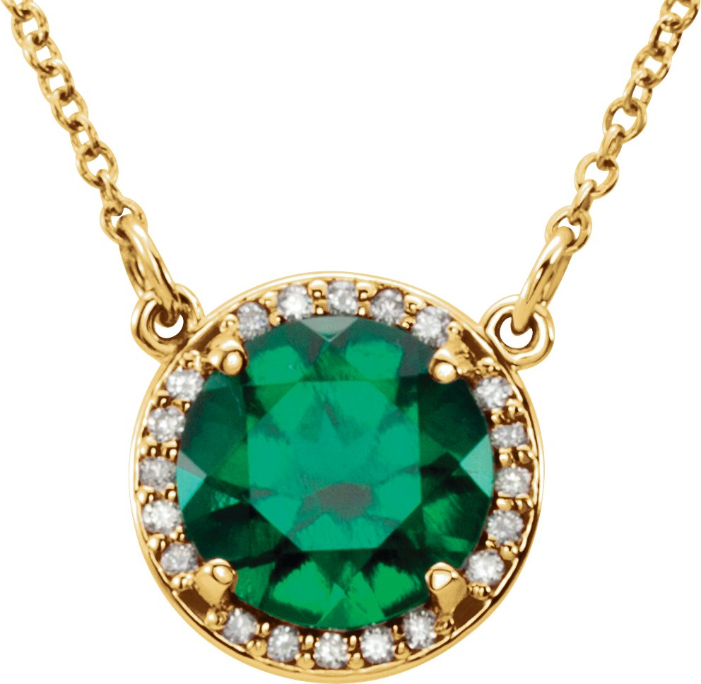 14K Yellow 6 mm Round Chatham Created Emerald and .04 CTW Diamond 16 inch Necklace