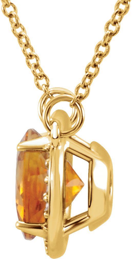 14K Yellow 6 mm Round Citrine and .04 CTW Diamond 16 inch Necklace